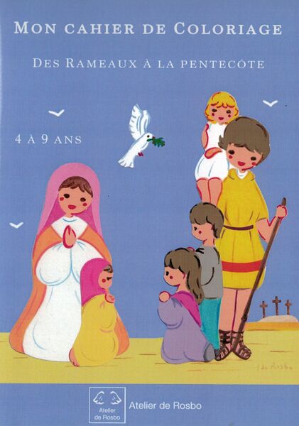 Avec ce cahier de coloriage, l’Atelier de Rosbo propose aux enfants de 4 à 9 ans de marcher pas à pas avec Jésus, des Rameaux jusqu’à la Pentecôte.